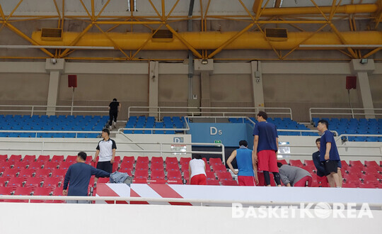 선수단은 셔틀 런 이후 체육관 내 계단을 뛰었다. 그저 뛰는 게 아니었다. 구역별로 돌아가며 뛰었다. 쉽게 말하면, 계단 오르기만으로 체육관 한 바퀴를 돈 것.