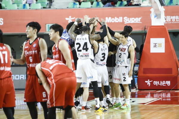 KT는 전반전까지 한국가스공사에게 고전을 면치 못했다. 앤드류 니콜슨(206cm, F)이 결장하면서 쉽게 경기를 풀어 갈 것으로 예상됐지만, 그러지 못했다.