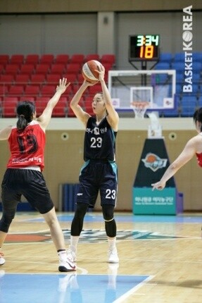 이날 연습경기는 핸드 체킹 룰을 강화한 규정으로 진행했다. 선수들은 바뀐 규칙 탓에 수비에 어려움을 겪었다. 이하은 역시 마찬가지였다.