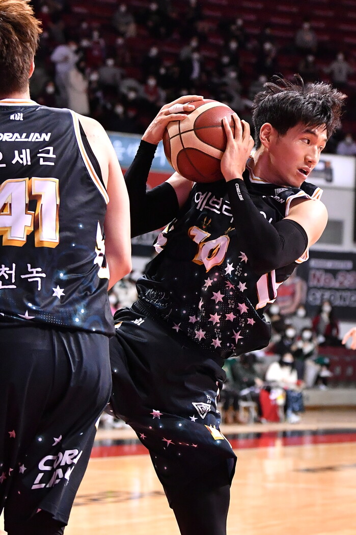 원주 DB의 에이스인 허웅(185cm, G)이 그 뒤를 이었다. 2021~2022 시즌 개막 후부터 집중 견제를 받았지만, ‘에이스’와 ‘주득점원’이라는 책임감을 잃지 않았다. 지난 1일 창원 LG전에서는 개인 최다인 39점을 퍼붓기도 했다. 지난 5일 안양 KGC인삼공사와 2차 연장을 할 때도 29점을 기록했다. 야투 성공률도 64.3%(2점 : 6/7, 3점 : 3/7). 폭발력에 효율성도 더해지는 것 같았다.
