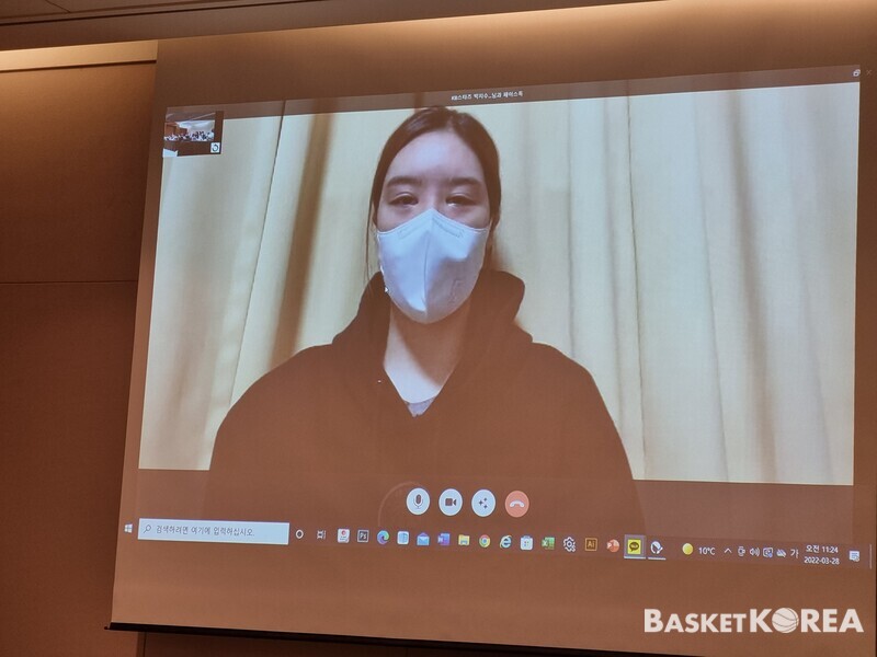하지만 박지수는 현장에 없었다. 코로나19로 인해 자가 격리에 돌입했기 때문. WKBL이 화상 인터뷰를 준비했고, 기자단과 박지수는 비대면으로 인터뷰를 진행했다.