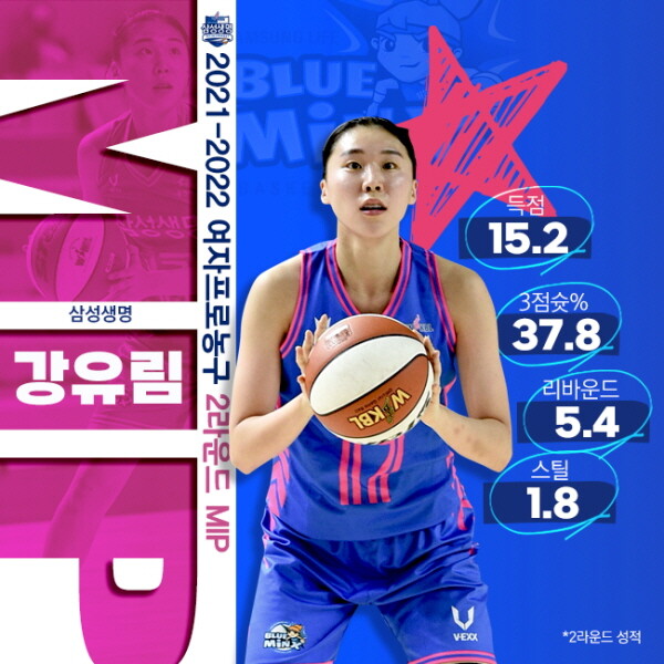 한편, 강유림(175cm, F)은 WKBL 심판부 및 경기 운영 요원 투표에서 총 34표 중 18표를 획득하며 KB 엄서이(9표)을 제치고 2라운드 MIP를 수상했다.