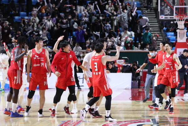 서울 SK는 6일 잠실학생체육관에서 열린 2021~2022 KGC인삼공사 정관장 프로농구 정규리그 경기에서 수원 KT를 80–75로 꺾었다. 이날 승리로 SK는 팀 최다인 12연승과 함께 30승 8패로 단독 1위를 유지했다.