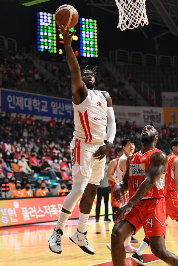 SK는 23일 고양실내체육관에서 벌어진 2021-22 정관장프로농구 4강 플레이오프 세 번째 경기에서 접전 끝에 고양 오리온을 86-81, 5점 차로 물리치고 대망의 결승전에 진출했다.