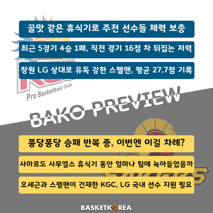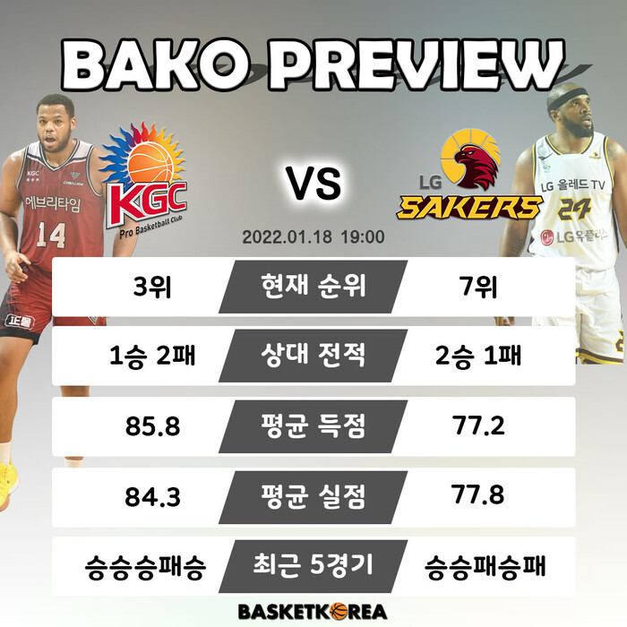 [BAKO PREVIEW] 2022.01.18 안양 KGC vs 창원 LG