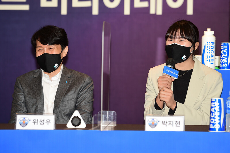대표 선수 자격으로 참석한 박지현도 “우리은행이라는 좋은 팀에 온 건 맞지만, 프로에 와서 챔피언 결정전에 한 번도 가지 못했다. 신인 때부터 지금까지 챔피언 결정전에 가는 게 목표였는데, 이번 시즌에는 그 마음이 더 커졌다. 플레이오프에서 좋은 결과를 내고 싶다”며 ‘챔피언 결정전’을 갈망했다.