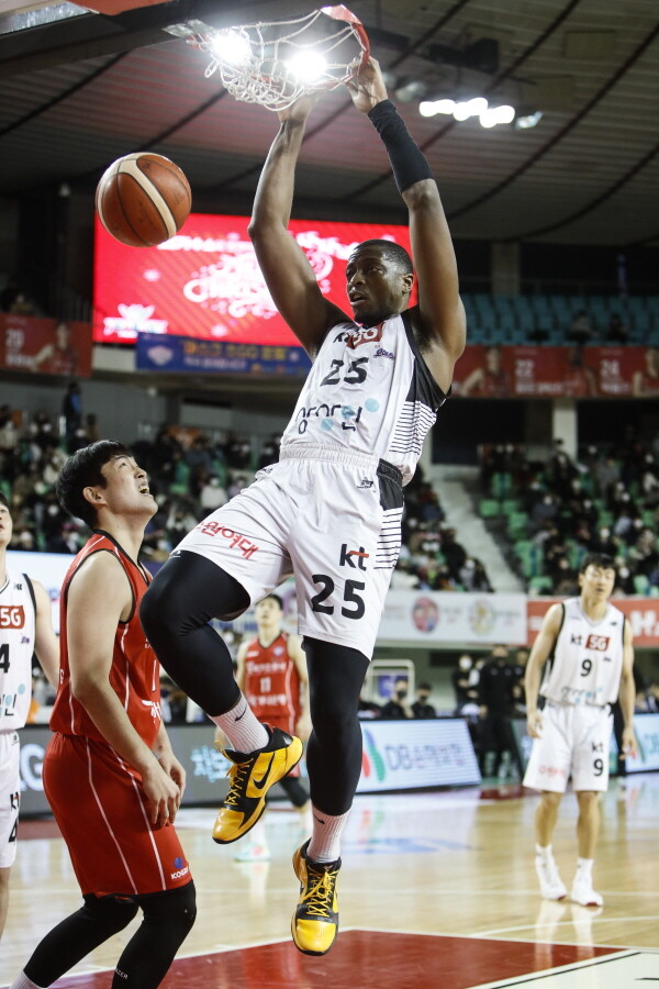 KT는 이날 앤드류 니콜슨(206cm, F)이 결장한 한국가스공사를 상대로 접전을 펼쳤다. 4쿼터 중반까지 59-54로 뒤졌지만, 막판 뒷심을 발휘해 승리할 수 있었다. 역전할 수 있었던 원인 중 높이의 우위를 꼽을 수 있는데, 그 중심에는 캐디 라렌(204cm, F)이 있었다.