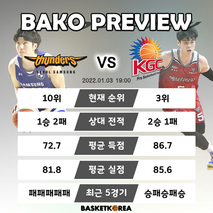 분위기 반전이 절실한 삼성과 상승세를 이어가고자 하는 KGC가 맞붙는다.