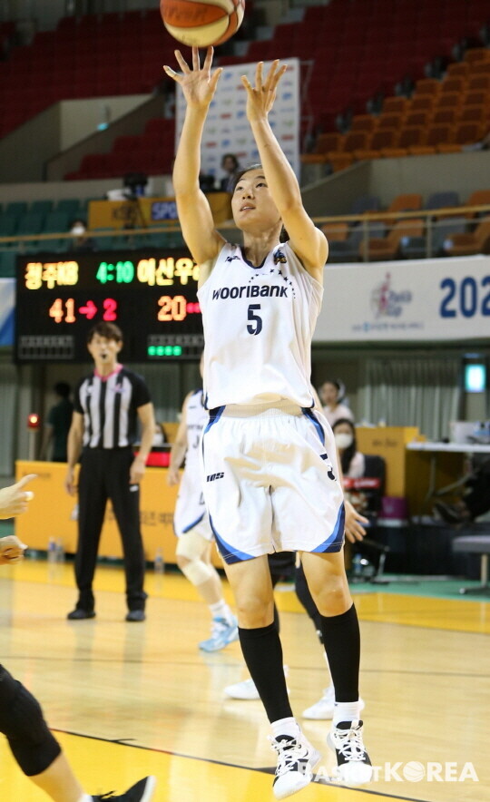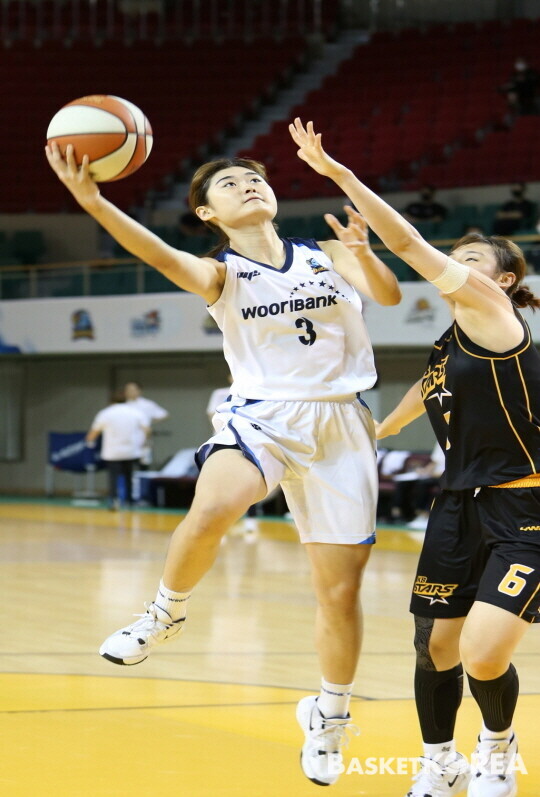 아산 우리은행은 17일(월요일) 청주 KB스타즈와 2020 우리은행 박신자컵 서머리그 두 번째 경기를 가졌다. 화보로 경기 장면을 담아 보았다. 경기 결과는 65-80 패배. 첫 번째 경기에서 가벼운 부상을 당한 최은실 결장이 크게 다가온 경기였다.