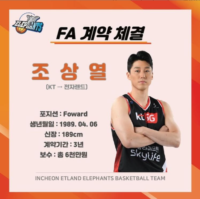전자랜드는 24일 SNS를 통해 “조상열을 영입했다”고 알렸다. 계약기간은 3년이며, 보수는 6천만원이다.
