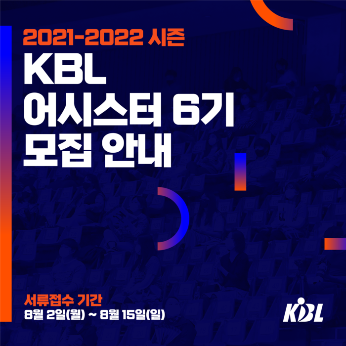 KBL 어시스터는 농구를 좋아하는 사람이라면 누구나 지원 가능하며, 서류 접수는 8/2(월)부터 8/15(일)까지 14일 동안 진행되며 자세한 사항은 KBL 통합 홈페이지(www.kbl.or.kr)를 통해 확인할 수 있다.