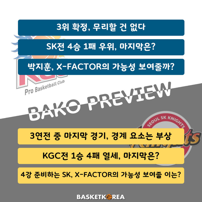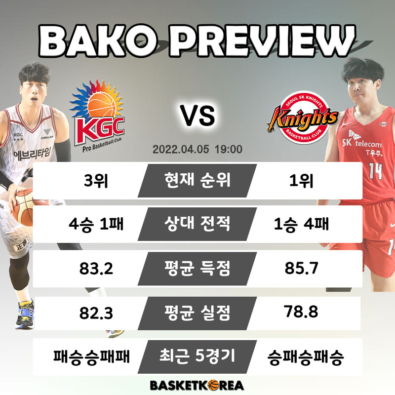 [BAKO PREVIEW] 2022.04.05 안양 KGC vs 서울 SK