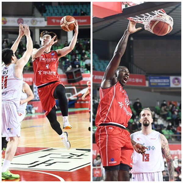 대구 한국가스공사는 17일 대구실내체육관에서 열린 2021~2022 KGC인삼공사 정관장 프로농구 정규리그에서 고양 오리온을 88-79로 꺾고 ‘대구 더비’에서 승리했다.