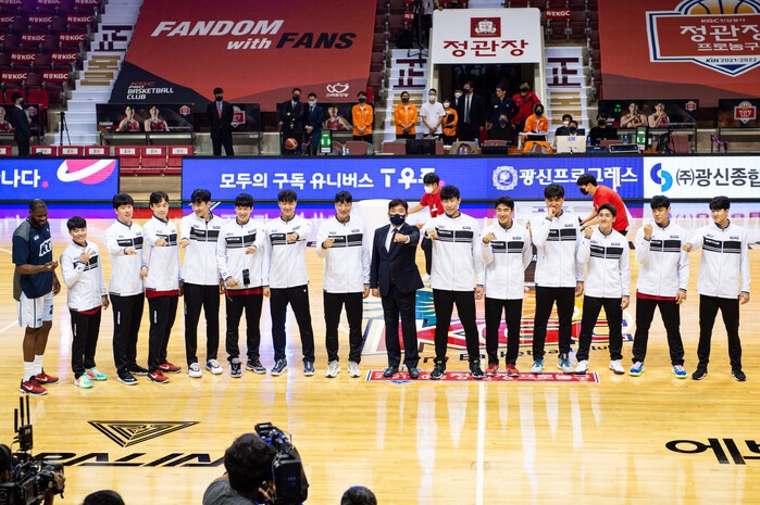 KGC인삼공사는 9일 안양체육관에서 열린 2020~2021 정관장 프로농구 KCC와의 홈 개막전에서 지난 시즌 챔피언 반지 전달식 거행했다.