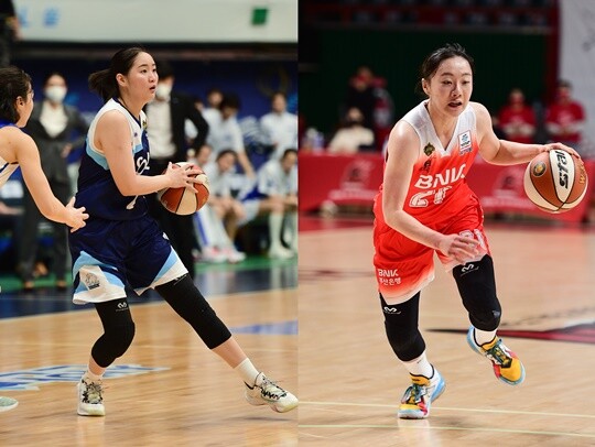 사진 설명 2 = 한엄지(부산 BNK 썸, 왼쪽)-김진영(인천 신한은행, 오른쪽)