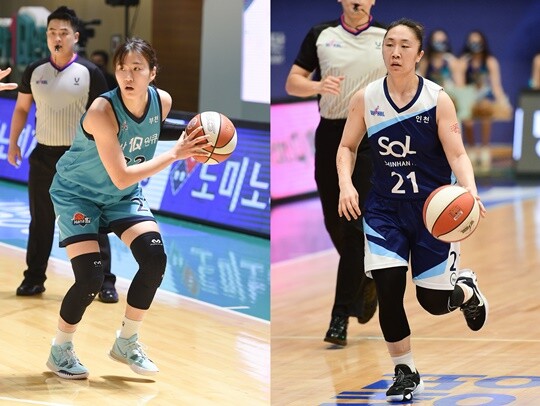 사진 설명 3 = 구슬(인천 신한은행, 왼쪽)-김애나(부천 하나원큐, 오른쪽)