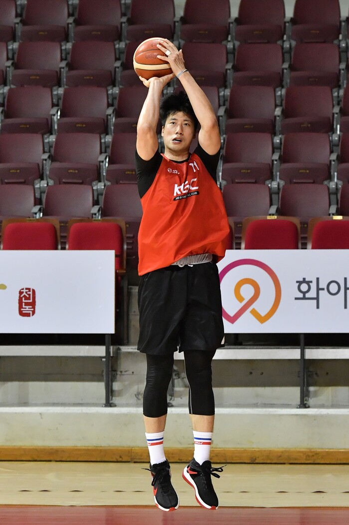 'KGC의 캡틴' 양희종이 정상을 목표로 구슬땀을 흘리고 있다.
