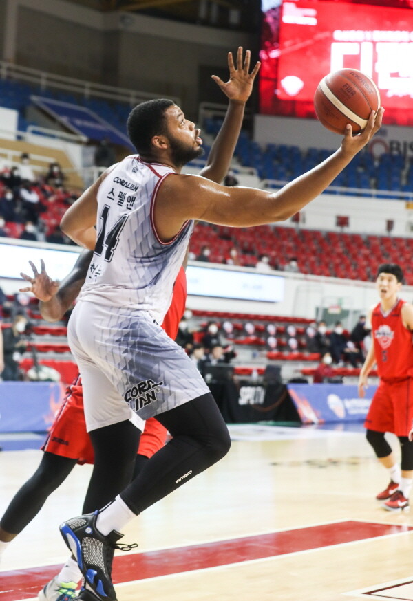 이후 스펠맨의 공격은 멈추지 않았다. 4쿼터에 3점 3개를 터트리며 현대모비스의 외곽 수비를 허물었다. 스펠맨은 후반전에만 20점을 기록하며 KGC의 15점 차(96-80) 승리를 이끌었다.