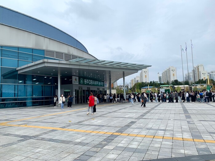 원주종합체육관 앞은 경기 시작이 한참 남았음에도 개막전을 기다리는 팬들로 문전성시를 이뤘다.