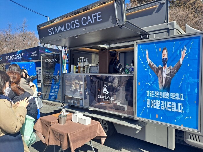 KCC 관계자는 "안녕하세요 금일 경기 전 전창진 감독 500승 축하 기념 팬들에게 선착순 커피 500잔 제공됩니다. 참고바랍니다"라며 커피차 제공 소식을 전했다.