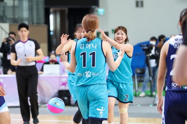 4경기 하나원큐와 신한은행의 경기는 접전 끝에 16-16 동점으로 마무리되었다. 두 팀은 이날 대회의 첫 연장전에 돌입했다. 연장전은 2점을 먼저 올린 팀의 승리로 끝난다. 한판승을 노리며 양 팀 선수들은 적극적으로 외곽포를 시도했다. 이중 이채은이 시도한 외곽포가 림을 통과했다. 이로써 연장 승부 승리는 하나원큐에 돌아갔다. 또한, 이 경기 승리로 하나원큐는 2전 2승을 거두었다.