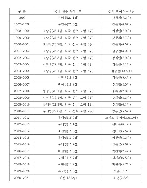 또 하나 아쉬운 게 있다. 허훈은 2019~2020 시즌에도 국내 선수 득점 1위와 전체 어시스트 1위를 동시에 거머쥘 수 있었다. 그러나 허훈의 2019~2020 시즌 평균 득점(평균 14.9점)은 송교창(15.0점)보다 0.1점 적었다. 허훈은 송교창한테 국내 선수 득점 1위를 내줬다.