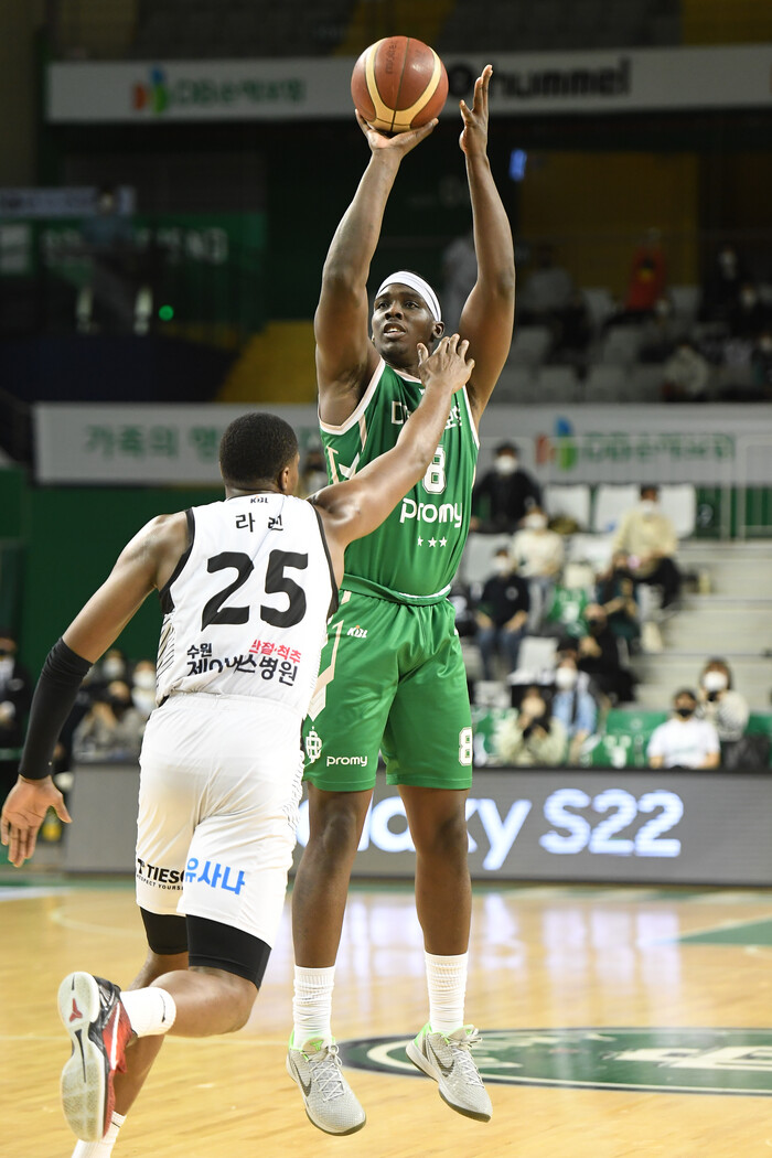 수원 KT는 올 시즌 페인트 존 실점률이 53.4%로 이 부문 리그 1위를 달리고 있다. 평균 12.5개의 공격 리바운드, 37.6개의 리바운드로 탄탄한 골밑 수비와 높이를 자랑하는 팀이다. 실제로 KT는 이날 1쿼터 시작 3분 만에 DB를 상대로 리바운드 11-3을 그리며 많은 공격 기회를 창출했다.