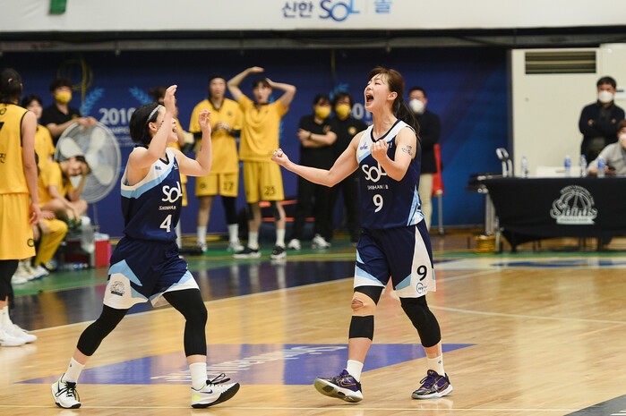사진 설명 = 슈팅 성공 후 포효하고 있는 신한은행 이경은(오른쪽)