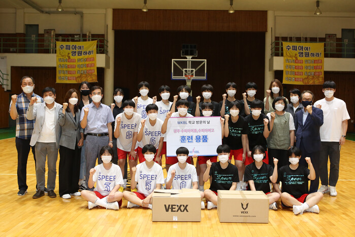 WKBL은 물품 전달식을 통해 수피아여중, 여고 농구부에 농구화, 트레이닝복 등 훈련에 필요한 용품을 전달했다.