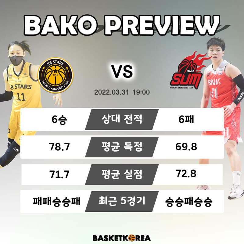 [BAKO PREVIEW] 2022.03.31 KB 스타즈 vs BNK 썸