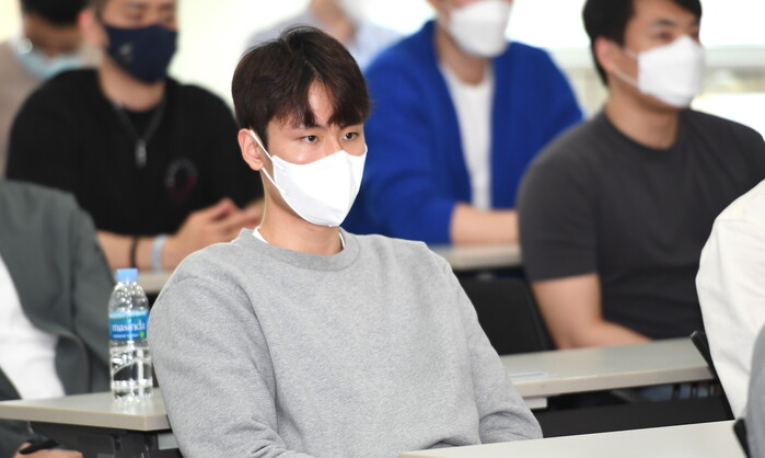 FA 설명회를 앞두고 많은 취재진이 모인 가운데, 모두들 찾는 선수는 KCC 송교창이었다. 이번 FA 시장 최대어로 평가 받는 송교창은 올 시즌 정규리그 MVP 수상자이다. 뿐만 아니라 그는 다른 선수들에 비해 비교적 어린 나이로 FA 자격을 취득해 구단들의 관심이 크다.