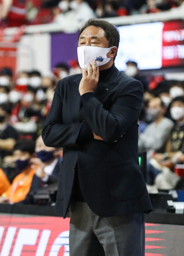 전 감독은 “(송)교창이가 예전에 30분 이상 뛰어도 거뜬했는데, 지금은 맥시멈 12분 정도 뛸 수 있다. 교창이가 여기서 다쳤기에, 기분이 좋지 않다. 큰 부상이었다. 트라우마도 있다. 다치는 꿈을 또 꿨다고 했다”며 송교창에게 대구실내체육관은 나쁜 기억밖에 없다고 말했다.