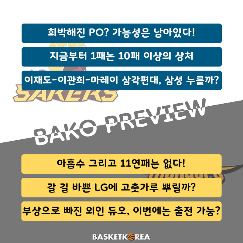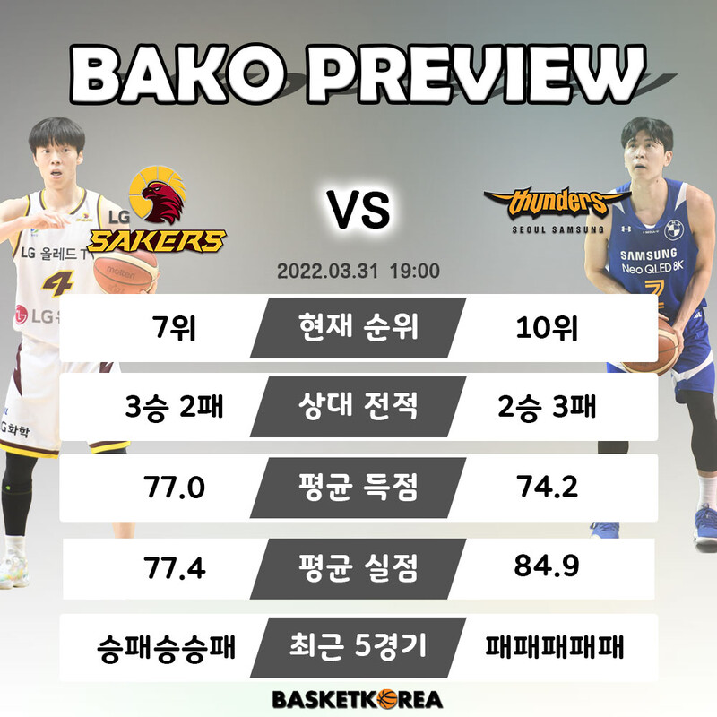 [BAKO PREVIEW] 2022.03.31 창원 LG vs 서울 삼성