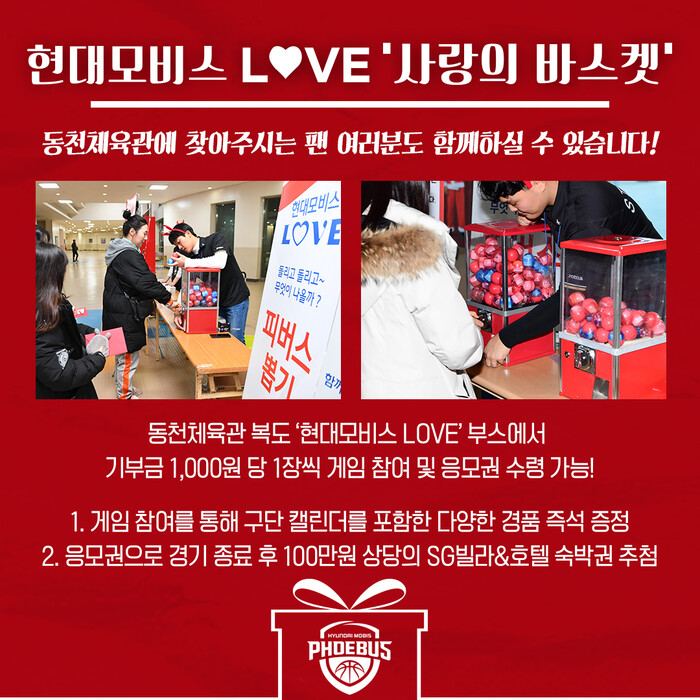 저소득 가정 환아를 지원하는 현대모비스의 대표 사회 공헌 활동이다 홈 경기장을 방문하는 관중 또한 현대모비스 LOVE에 참여 가능하다.