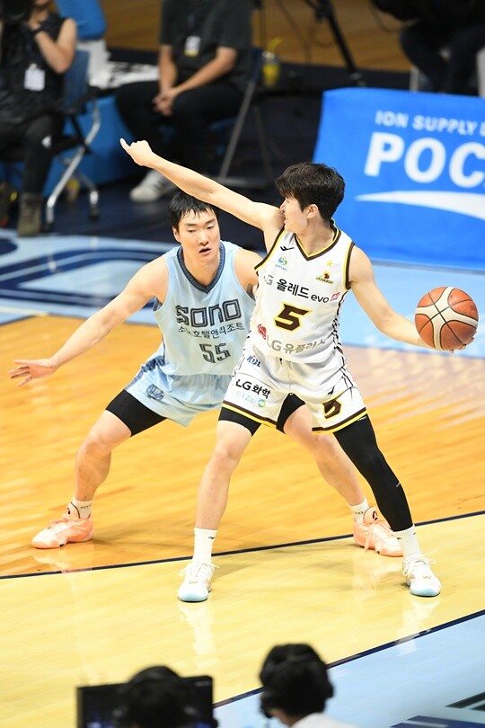 LG의 강점은 ‘포지션 밸런스’다. 주전 5명 모두 출중하다. 그래서 김진유의 임무도 중요하다. LG 야전사령관인 양준석(181cm, G)이나 LG 외곽 주득점원인 유기상(188cm, G)을 제어해야 한다. 또, 많은 활동량으로 팀원들에게 에너지를 불어넣어야 한다.