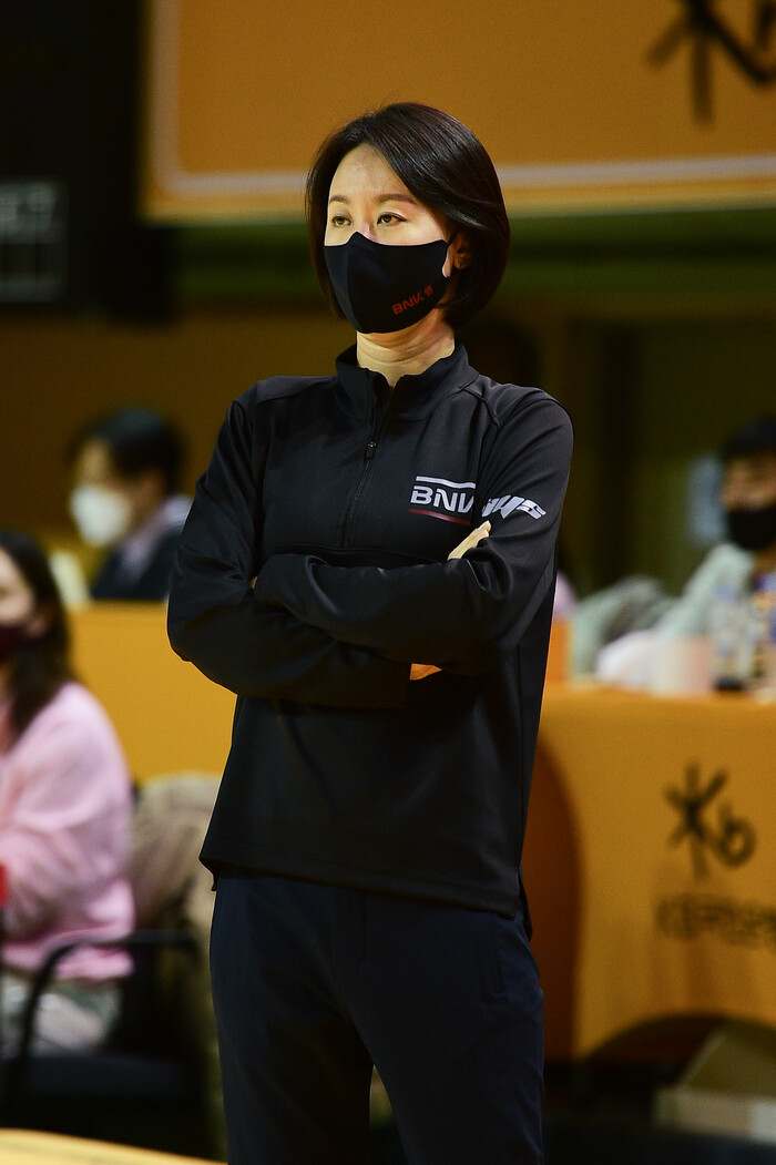 BNK는 하프 타임 대부분을 미팅에 할애했다. 마음가짐을 다잡기 위함이었다. 점수 차라도 좁히는 걸 3쿼터 목표로 삼았다.