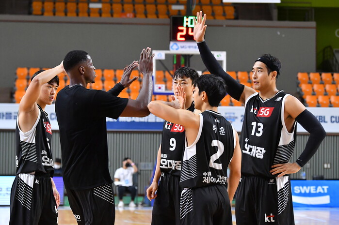 수원 kt는 16일 상주실내체육관에서 열린 2021 MG새마을금고 KBL 컵대회 B조 예선 최종전에서 고양 오리온을 85-69로 꺾었다. 2전 전승으로 B조 1위. 4강 토너먼트에 진출한 마지막 팀이 됐다.