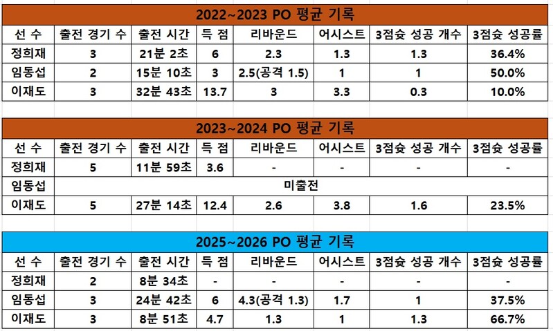[정희재-임동섭-이재도, 2022~2023부터 PO 기록]