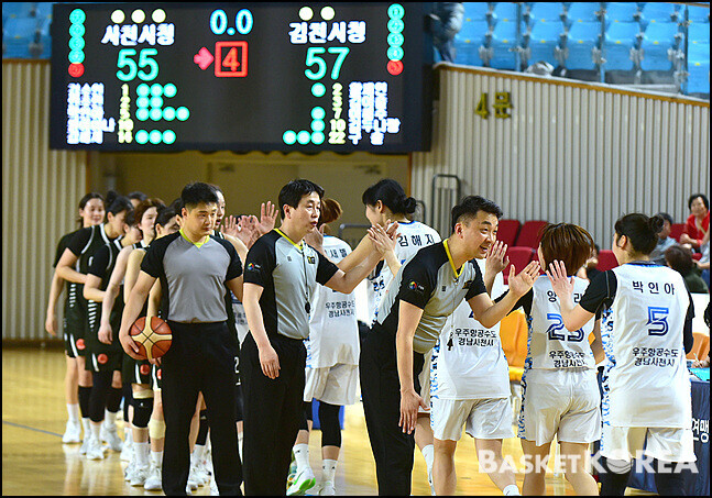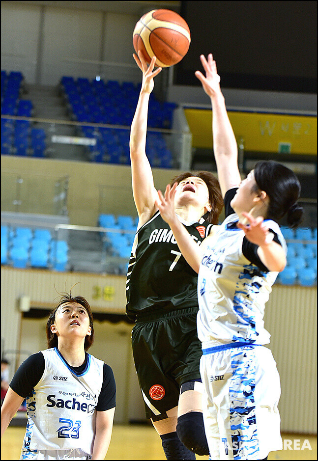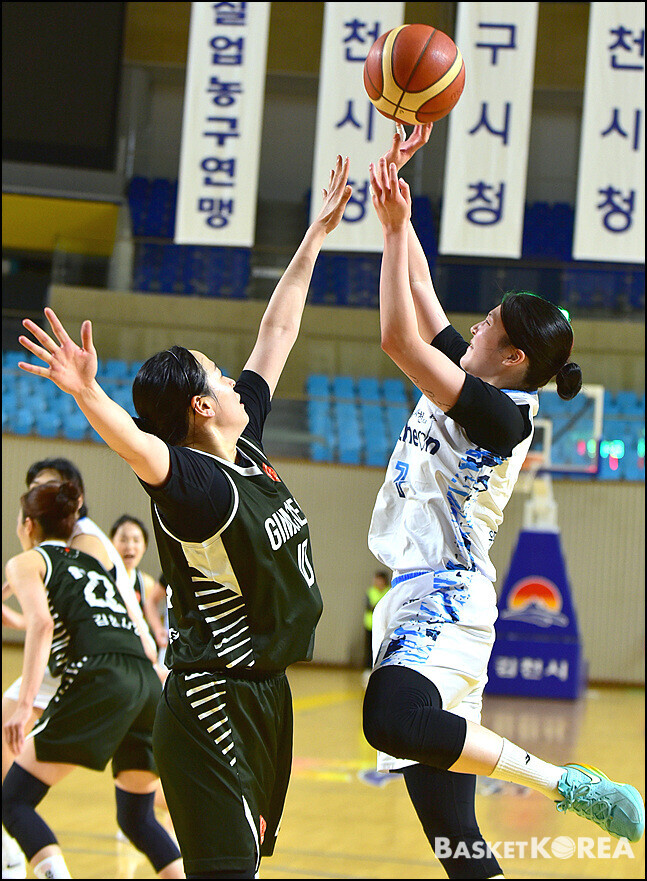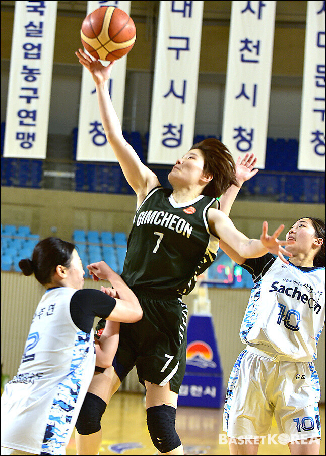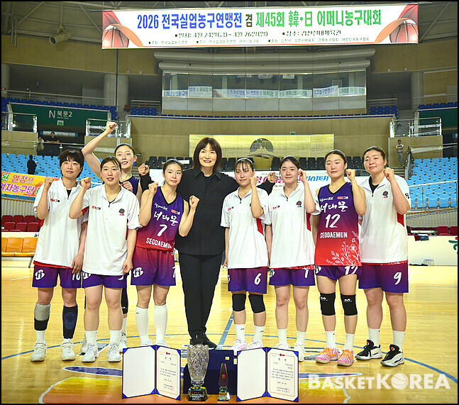 [바스켓 코리아 = 김천 / 박영태 기자]  "2026년 전국실업농구연맹전 겸 제45회 한 일 어머니농구대회"가 4월24일부터 26일까지 3일간 김천실내체육관에서 열띤 경기가 펼쳐졌다. 26일 마지막날 열린 김천시청과 사천시청와의 경기는 57-55로 김천시청이 승리하여 우승을 차지했다. 이 날의 경기모습과 시상식 모습을 사진으로 담아 보았다.