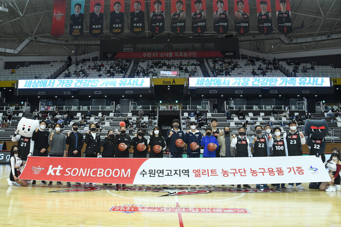 또한, 전달식에 참석한 수원시 농구협회 최성일 회장은 “수원 KT 농구단이 연고 지역 학교에 관심을 가져주어 감사하다”며, “지역 초중고교 선수들이 실력이 향상되고, 수원의 농구 저변이 확대되는 계기가 되길 기대한다”고 말했다.