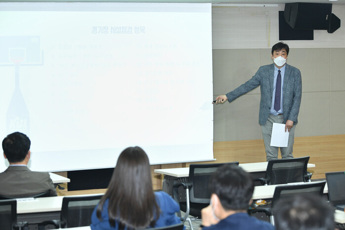 박웅렬 심판부장의 설명과 기자단과 박웅렬 심판부장의 질의응답이 끝난 후, 오원강 KBL 경기부장이 ‘경기장 시설 점검 관련 사항’을 설명했다.