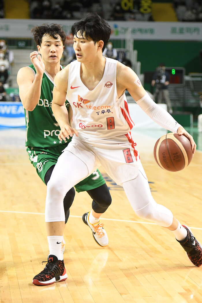 서울 SK가 6일 원주종합체육관에서 열린 2021~2022 KGC인삼공사 정관장 프로농구 6라운드 원주 DB와의 맞대결에서 77-71로 승리했다.