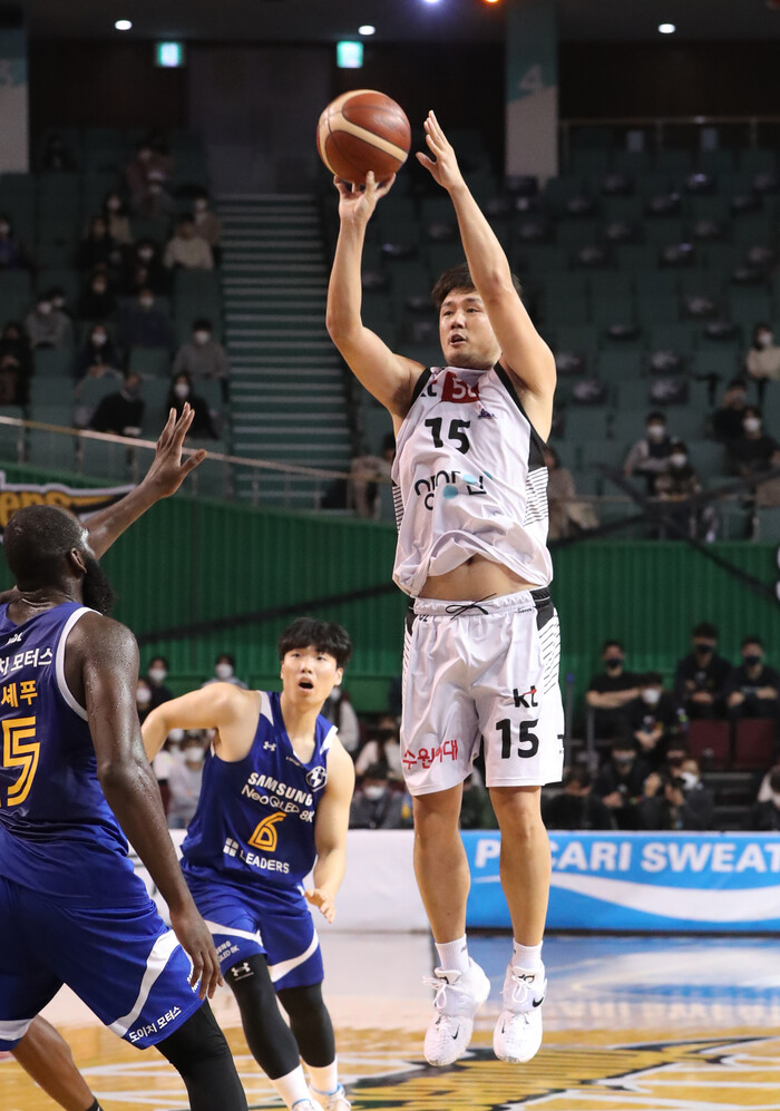 수원 KT가 21일 잠실실내체육관에서 열린 2021~2022 KGC인삼공사 정관장 프로농구 정규리그에서 서울 삼성을 67-58로 꺾고, 단독 1위 도약에 성공했다.
