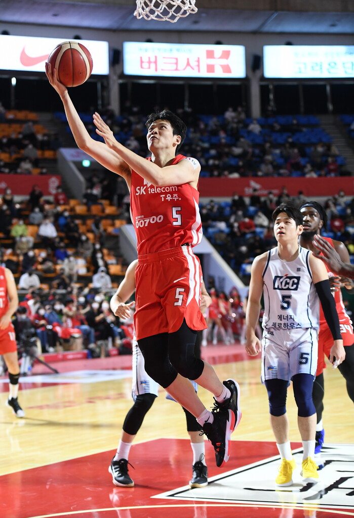 서울 SK는 28일 잠실학생체육관에서 열린 2021~2022 KGC인삼공사 정관장 프로농구에서 전주 KCC를 96-91로 꺾고, 분위기 반전을 이뤄냈다.