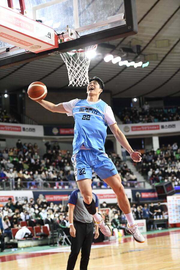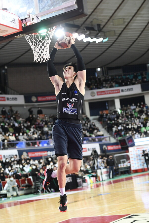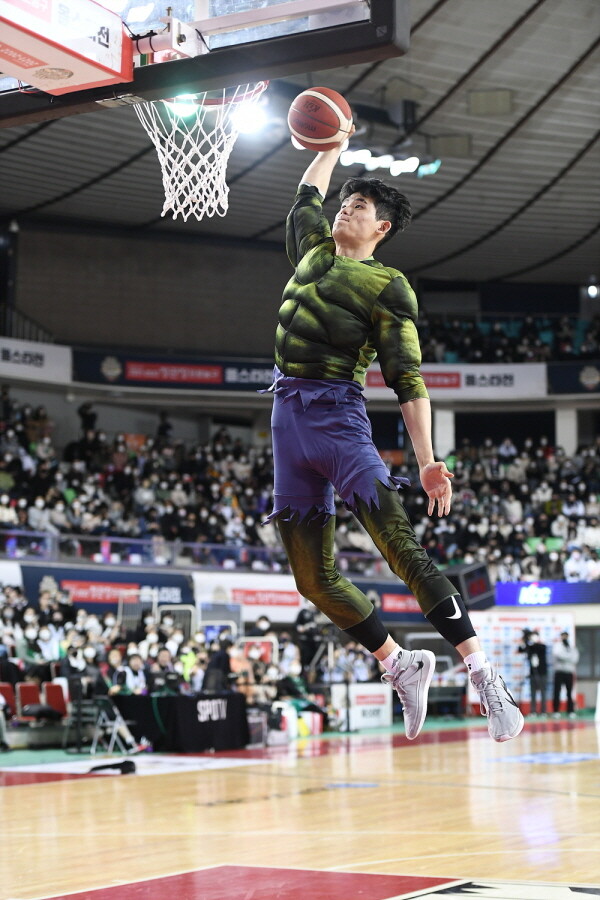 헐크 복장을 한 하윤기가 강력한 퍼포먼스를 선보이며 덩크 콘테스트 우승을 차지했다.