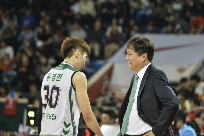 사진 설명 = 왼쪽부터 두경민-이상범 감독(이상 원주 DB)