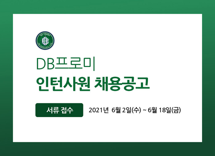 DB는 4일 보도자료를 통해 “21-22시즌을 함께할 사무국 인턴사원을 채용한다”고 알렸다.