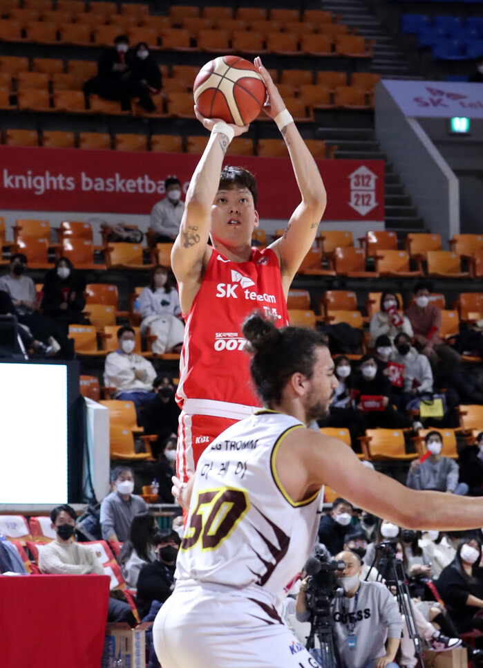 SK는 18일 잠실학생체육관에서 열린 2021-2022 KGC인삼공사 정관장 프로농구 창원 LG와의 정규리그 3라운드 경기에서 최준용(25점 7리바운드 4어시스트), 자밀 워니(14점 11리바운드), 안영준(11점 5리바운드) 등의 활약을 묶어 83–77로 이겼다.