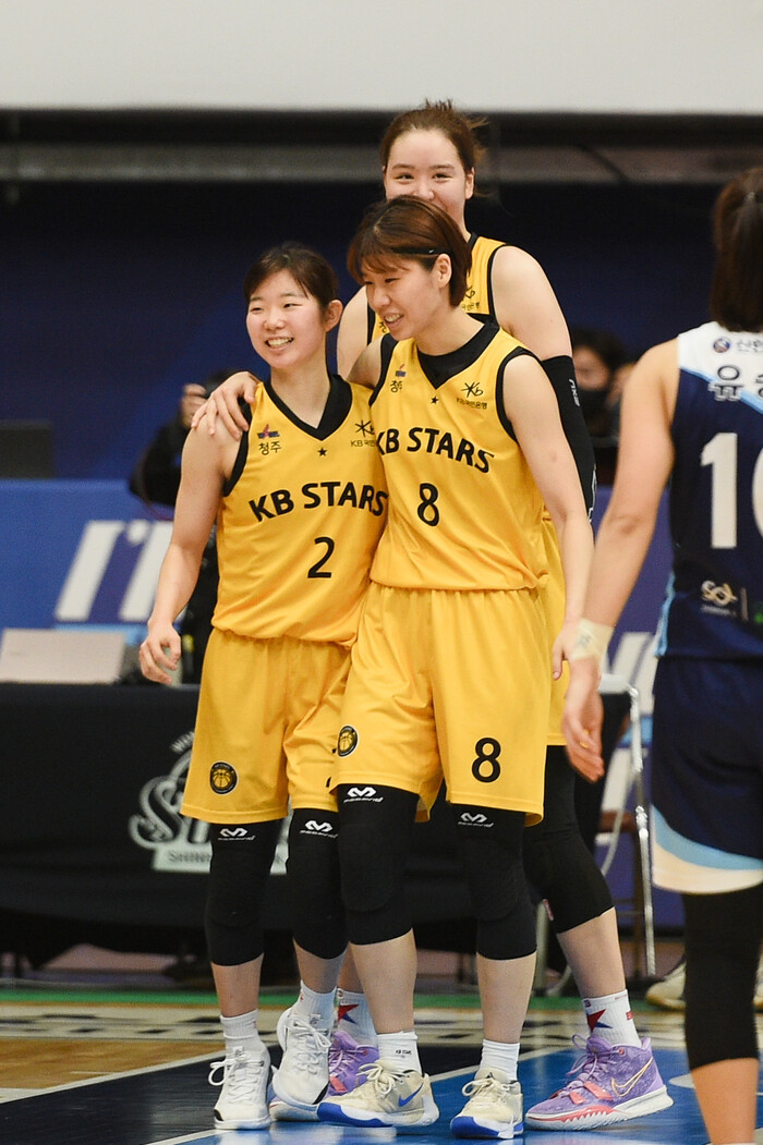 청주 KB스타즈는 13일 인천도원체육관에서 열린 삼성생명 2021~2022 여자프로농구 정규리그에서 인천 신한은행을 77-75로 꺾었다. 1라운드 전승(5승)에 이어, 2라운드 2경기도 모두 승리. 7승으로 단독 1위를 유지했다.