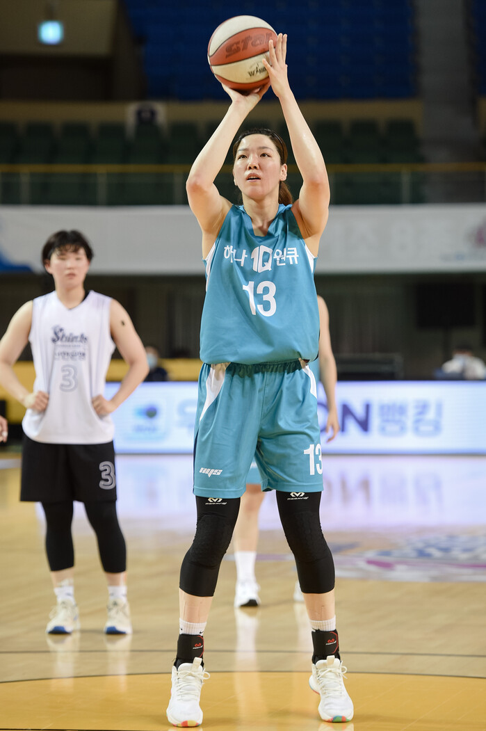 용인 삼성생명에서 FA 자격을 얻어 이적한 양인영은 지난 6월 하나원큐의 유니폼을 입고 트리플잼에서 첫 선을 보였다. 하지만 5x5 경기는 이날이 처음이었다. 새로운 소속팀으로 나선 경기가 긴장되지 않았을까.